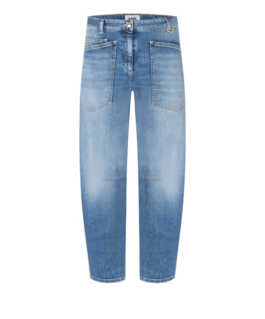 Enkellange 5-pocket jeans van Cambio met ballon pijpen, opgestikte voor- en achterzakken en een knoop- en ritssluiting.