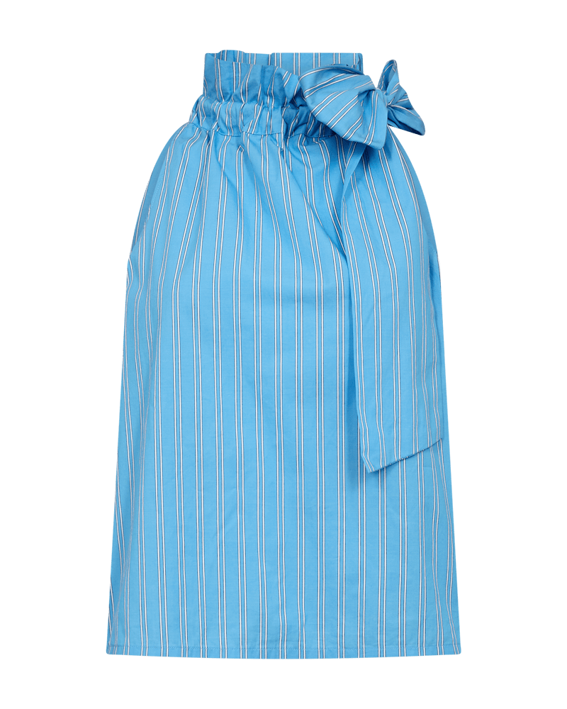 Mouwloze gestreepte haltertop van Cphn Muse met een hoge kraag voorzien van striksluiting.