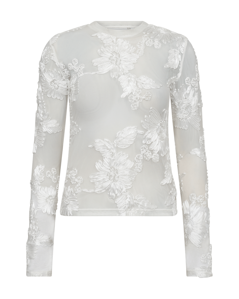 Mesh top van Cphn Muse voorzien van een decoratieve bloemen patroon met lange mouwen en een ronde hals. Materiaal: Polyester 90%| elastan 10%