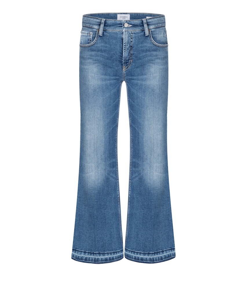5-pocket, enkellange flared jeans van Cambio met een knoop- en ritssluiting en uitgelegde zomen in de pijpen. Materiaal: Katoen 97%| elastan 3%
