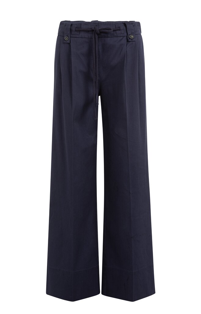 Deze comfortabele geweven broek van YAYA heeft een hoge taille met elastische band en een strikkoord met metalen uiteinden. De wijde pijpen en plooien aan de voorkant zorgen voor een luchtige, vrouwelijke uitstraling. Voorzien van steekzakken en paspelzakken achter. Materiaal: Katoen 97%| elastan 3%