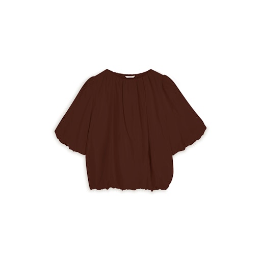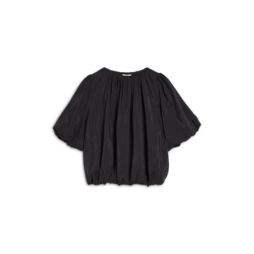 Blouse van Summum met korte pofmouwen, ronde hals voorzien van plooien en een elastische zoom. Materiaal: Viscose 52%| katoen 48%