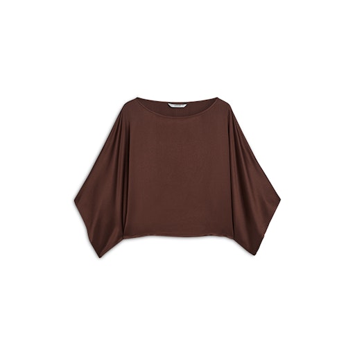 Satijnen top van Summum met driekwart aangeknipte mouwen en een boothals. Materiaal: Acetate 100%