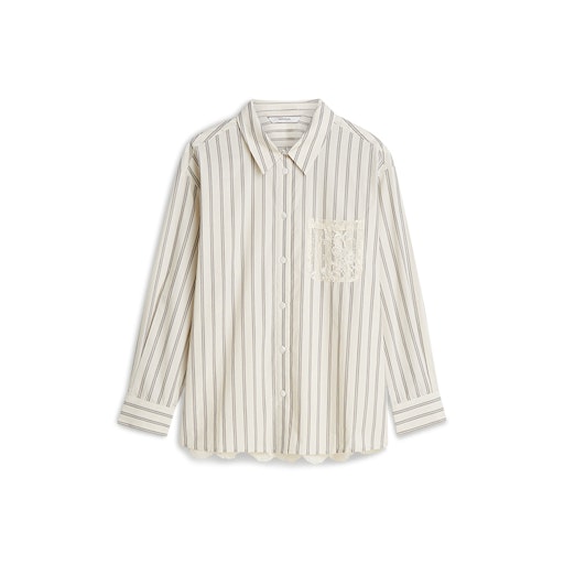 Gestreepte blouse van Summum met een kanten achterzijde, lange mouwen, klassieke kraag, knoopsluiting en een opgestikte kanten borstzak. Materiaal: Katoen 100%