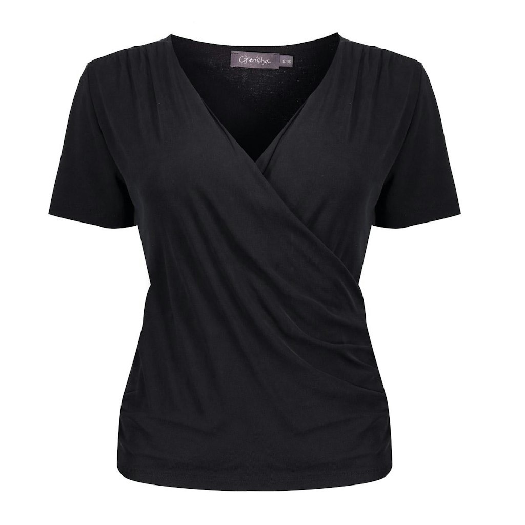 T-shirt van Geisha met korte mouwen en een V-hals voorzien van overslag. Materiaal: Viscose 87%| polyester 10%| elastan 3%