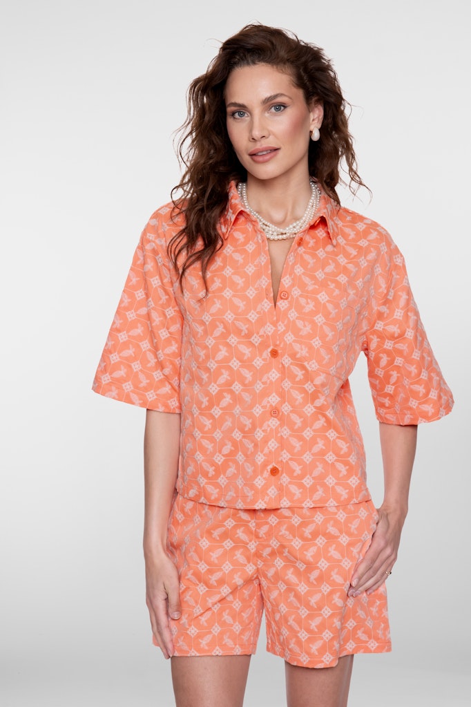 Blouse van Geisha in een all-over dessin met halflange mouwen, kraag en een knoopsluiting. Materiaal: Polyester 100%
