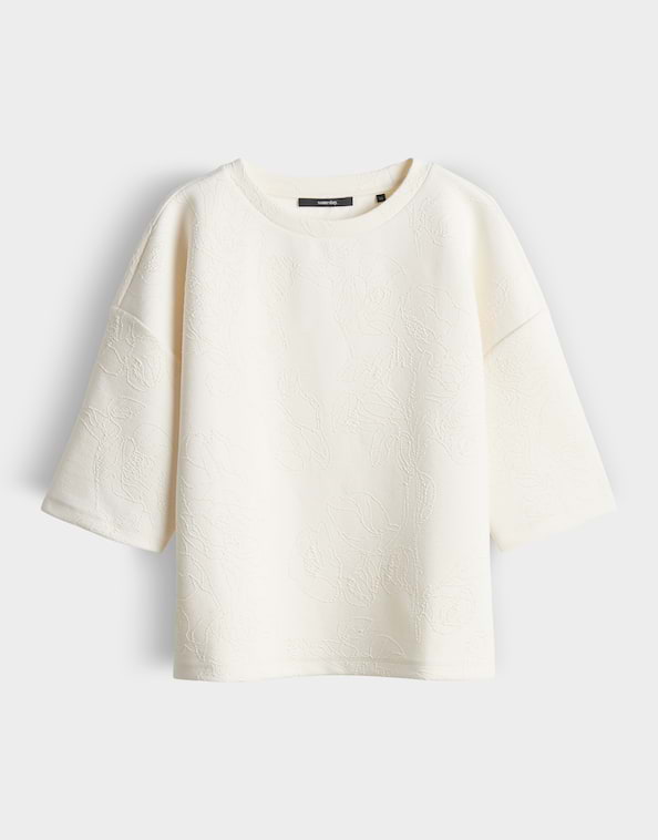 Boxy sweater van Someday met een 3D borduurwerk, halflange mouwen, verlaagde schoudernaden en een ronde hals. Materiaal: Katoen 68%| polyestre 29%| elastan 3%