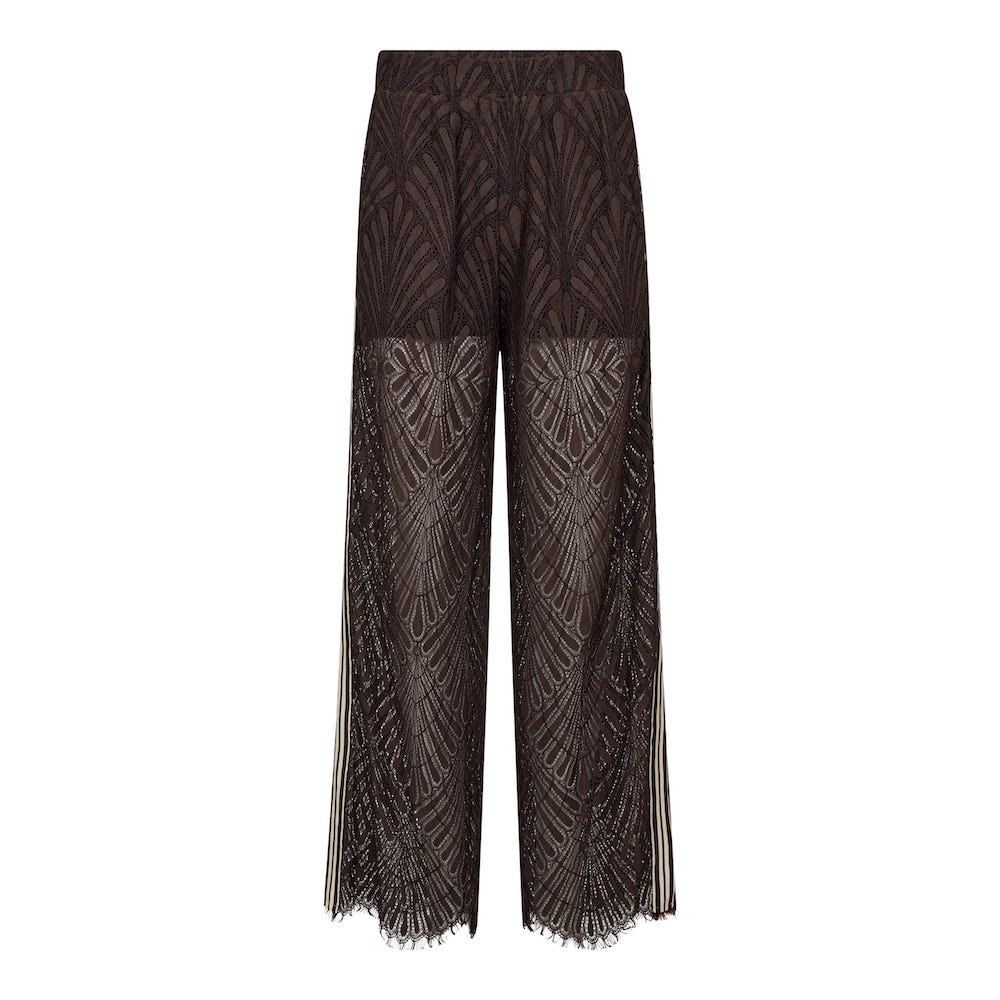 Kanten broek van Co'Couture met een elastische tailleband, wijde pijpen voorzien van gestreepte bies en steekzakken.