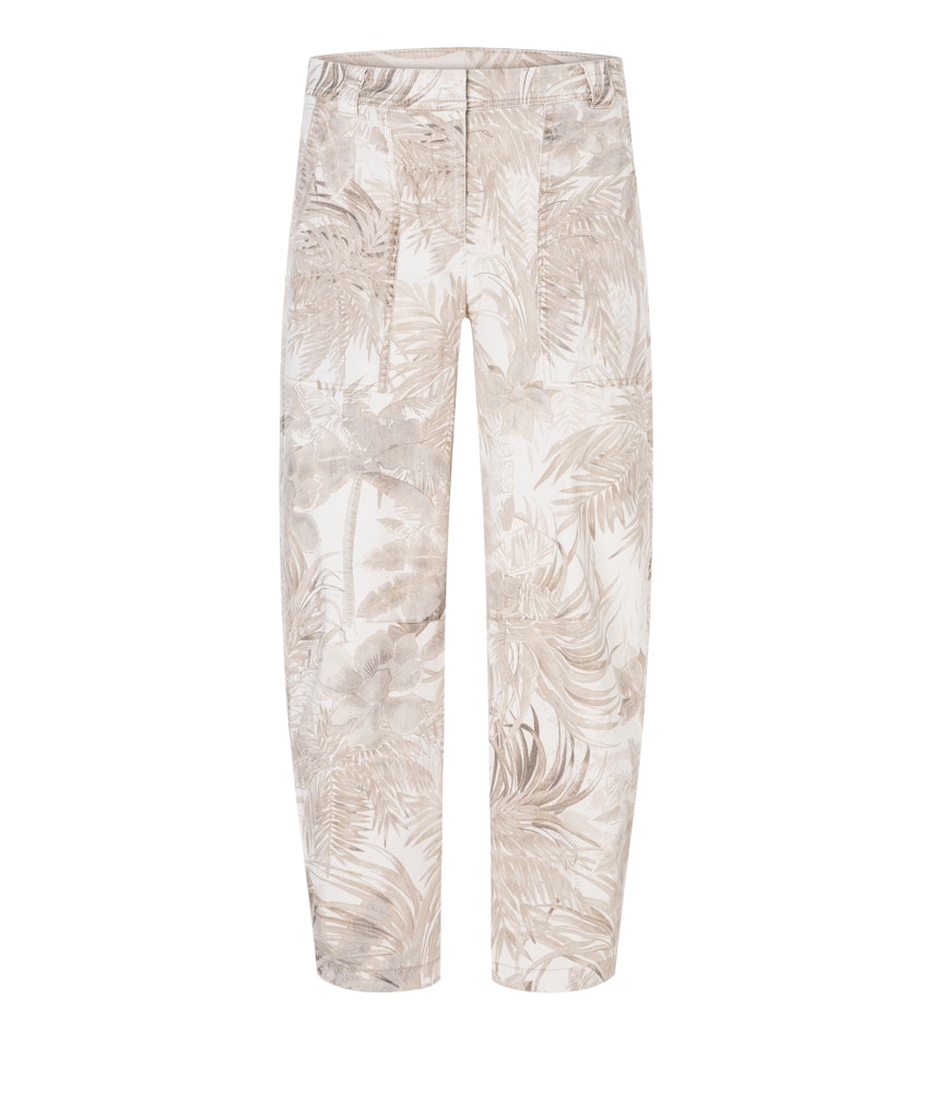 Barrel-fit broek van Cambio in een all-over dessin met een verborgen knoop- en ritssluiting, steekzakken en opgestikte achterzakken.
