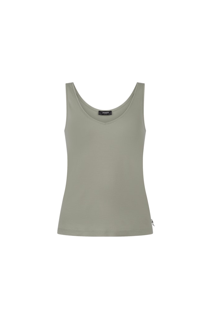 2-way singlet van Jansen Amsterdam draagbaar met zowel een V-hals als ronde hals. Materiaal: Tencel 95%| elastan 5%