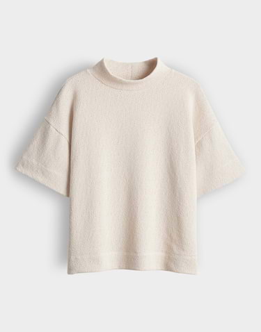 Fijn gebreide trui van Someday in een subtiele structuur met halflange mouwen, verlaagde schoudernaden en een opstaande kraag.