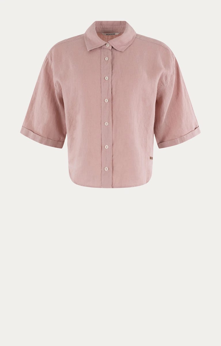 Linnen blouse van Mscw met halflange mouwen voorzien van omslag, kraag, knoopsluiting en een afgeronde zoom. Materiaal: Linnen 100%
