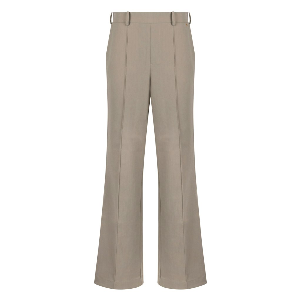 Pantalon van Nukus met wijde pijpen, doorgestikte naad aan de voorzijde, steekzakken, paspelzakken aan de achterzijde en een elastische tailleband.