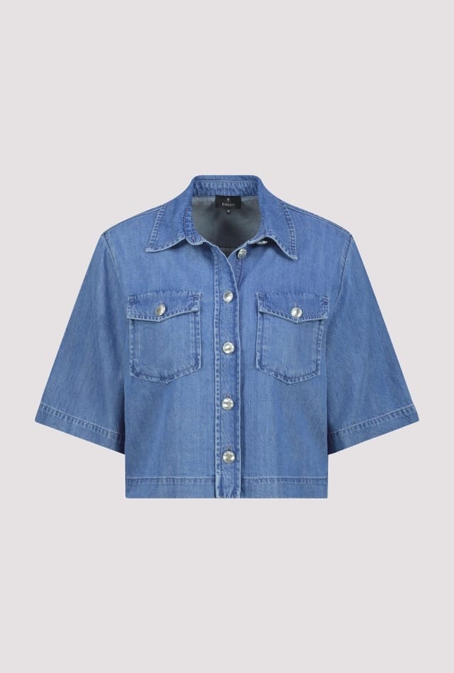 Denim jacket van Monari met halflange mouwen, knoopsluiting, kraag en klepzakken op de borst. Materiaal: Katoen 50%| lyocell 50%
