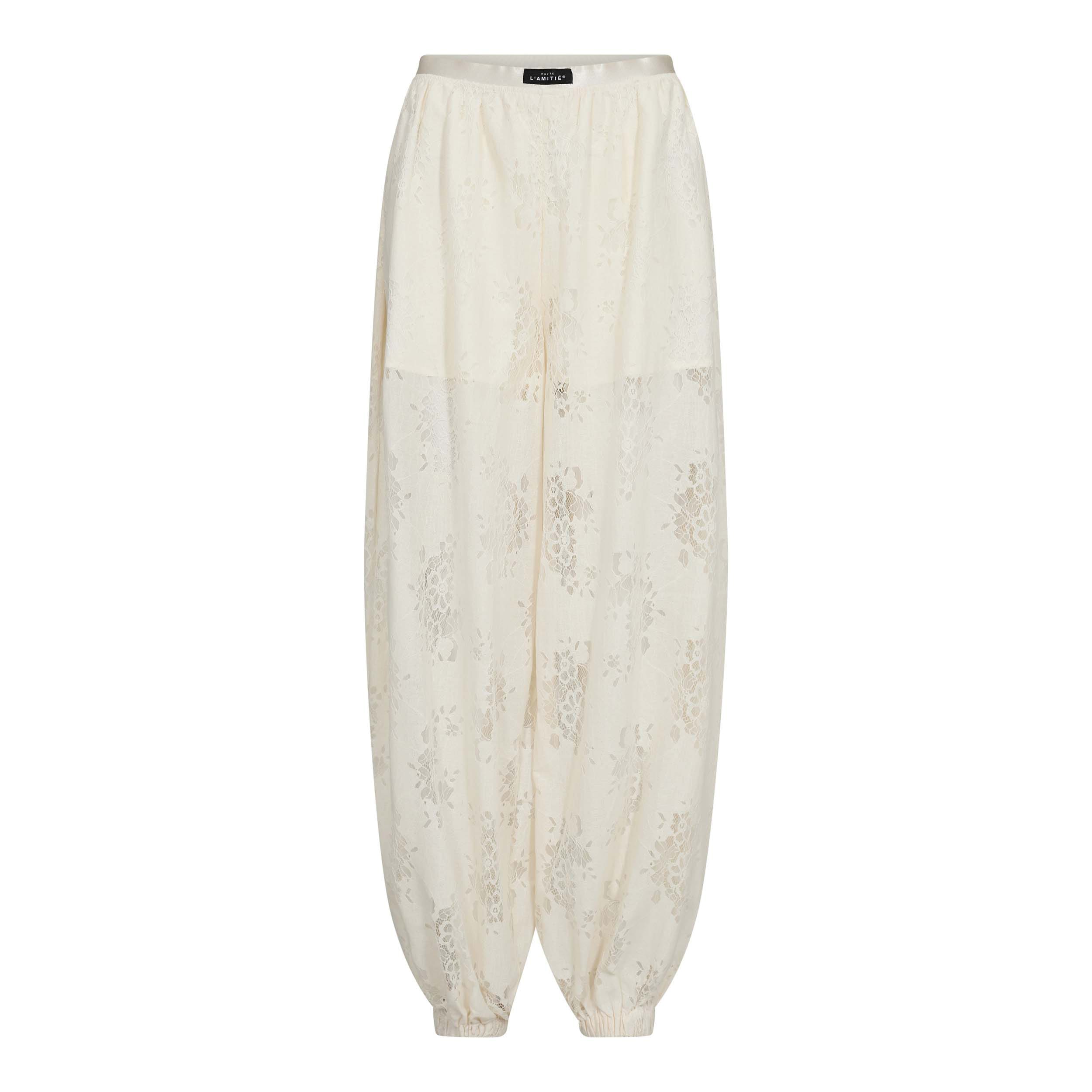 Harembroek van Haute l'Amitie met kant en bloemenpatroon, elastische boorden onderaan de pijpen en elastische tailleband. Materiaal: Katoen 60%| polyamide 40%