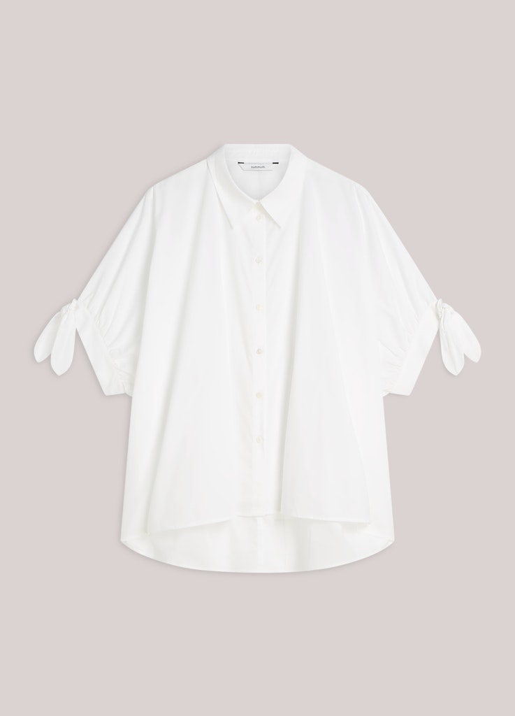Oversized blouse van Summum met halflange pofmouwen voorzien van strikdetail, kraag en een knoopsluiting. Materiaal: Katoen 100%