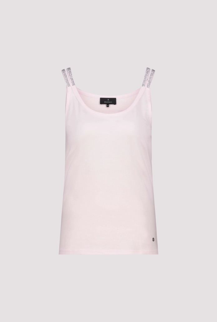 Singlet van Monari met een ronde hals en gedeelde spaghetti bandjes voorzien van pailletten. Materiaal: Katoen 50%| modal 50%