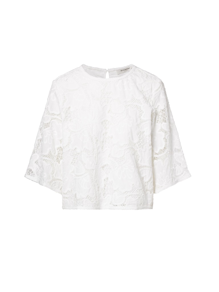 Kanten blouse van Beaumont met driekwart raglanmouwen, ronde hals en een keyhole voorzien van knoopsluiting aan de achterzijde. Materiaal: Katoen 100%