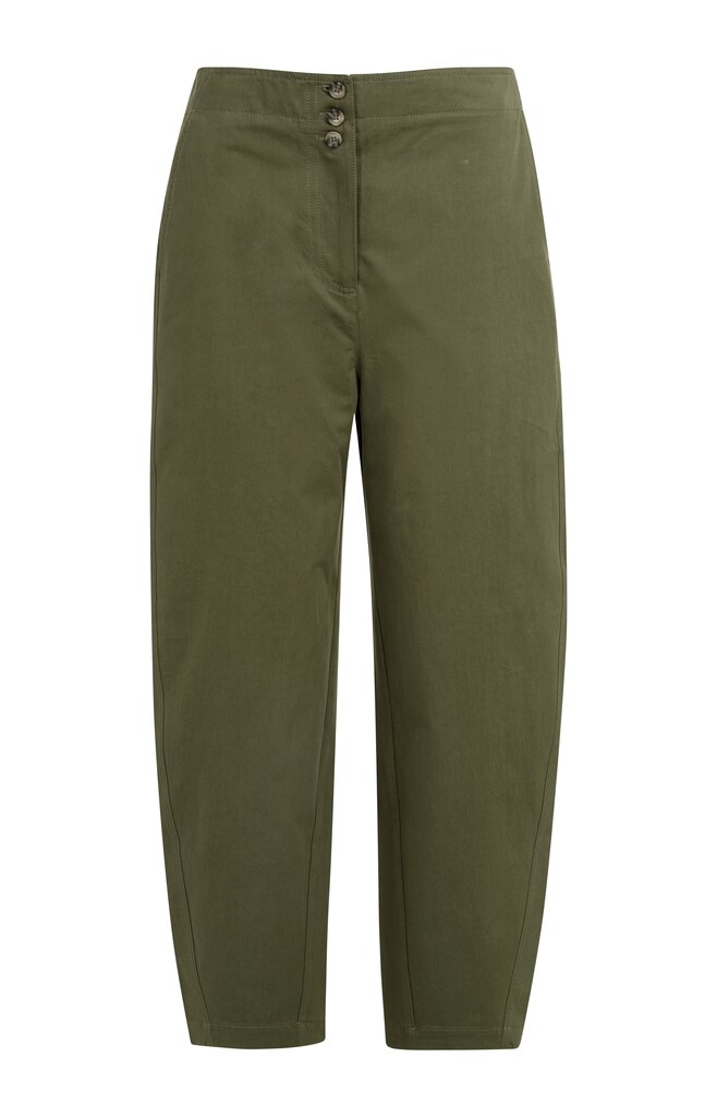 Deze high waist broek van Yaya is gemaakt van een gladde, geweven stof en heeft een relaxed barrel leg model dat iets taps toeloopt naar de enkels. Het ontwerp is voorzien van steekzakken, opgestikte achterzakken en een speels knoopdetail in de tailleband.