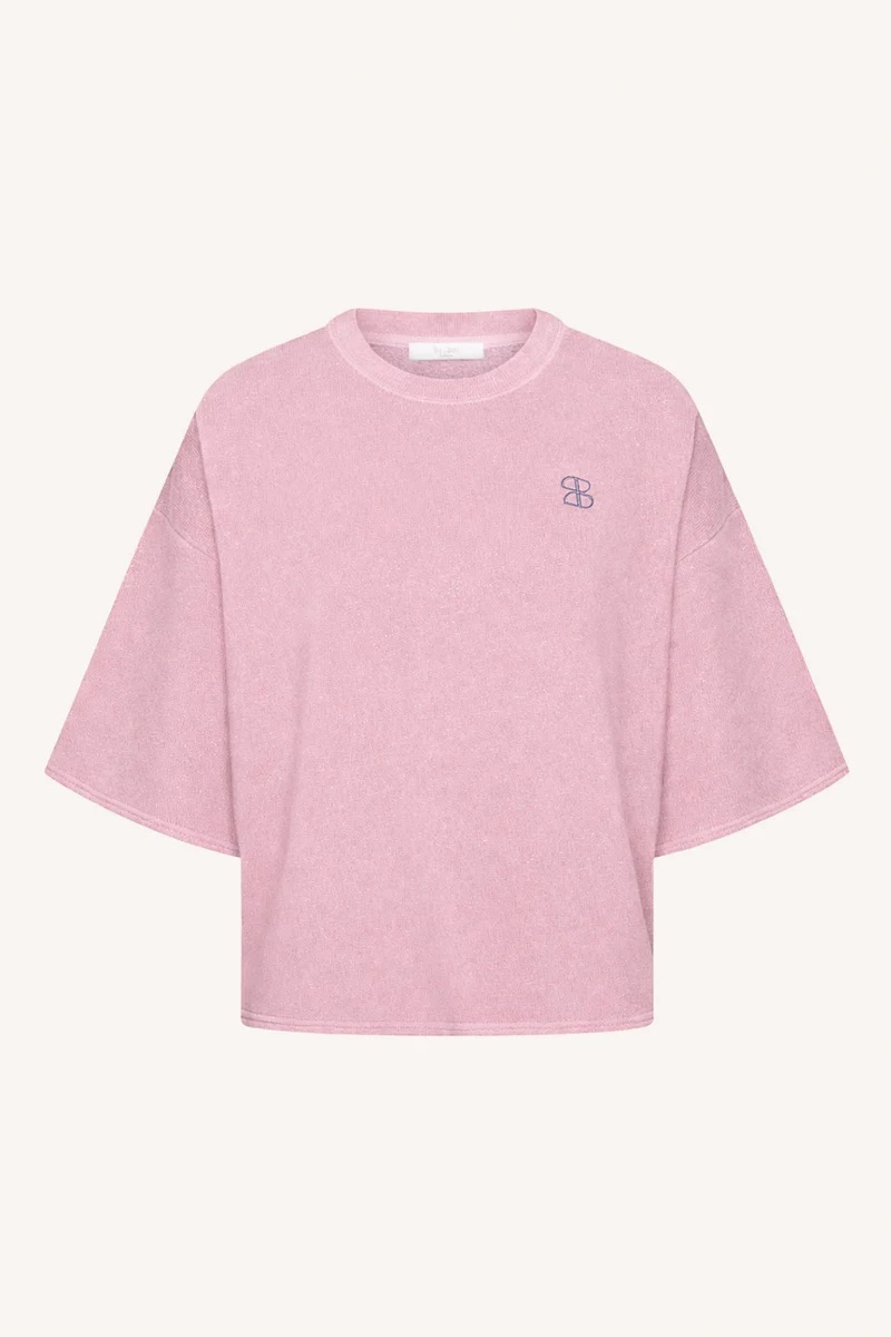 Casual top van By-Bar met korte mouwen, verlaagde schoudernaden, ronde hals en een geborduurd logo op de linkerborst.