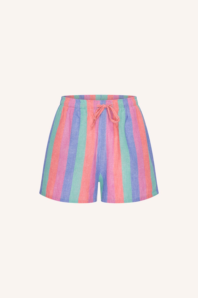 Multicolor gestreepte short van By-Bar met steekzakken en een elastische tailleband voorzien van trekkoord. Materiaal: Organisch katoen 100%