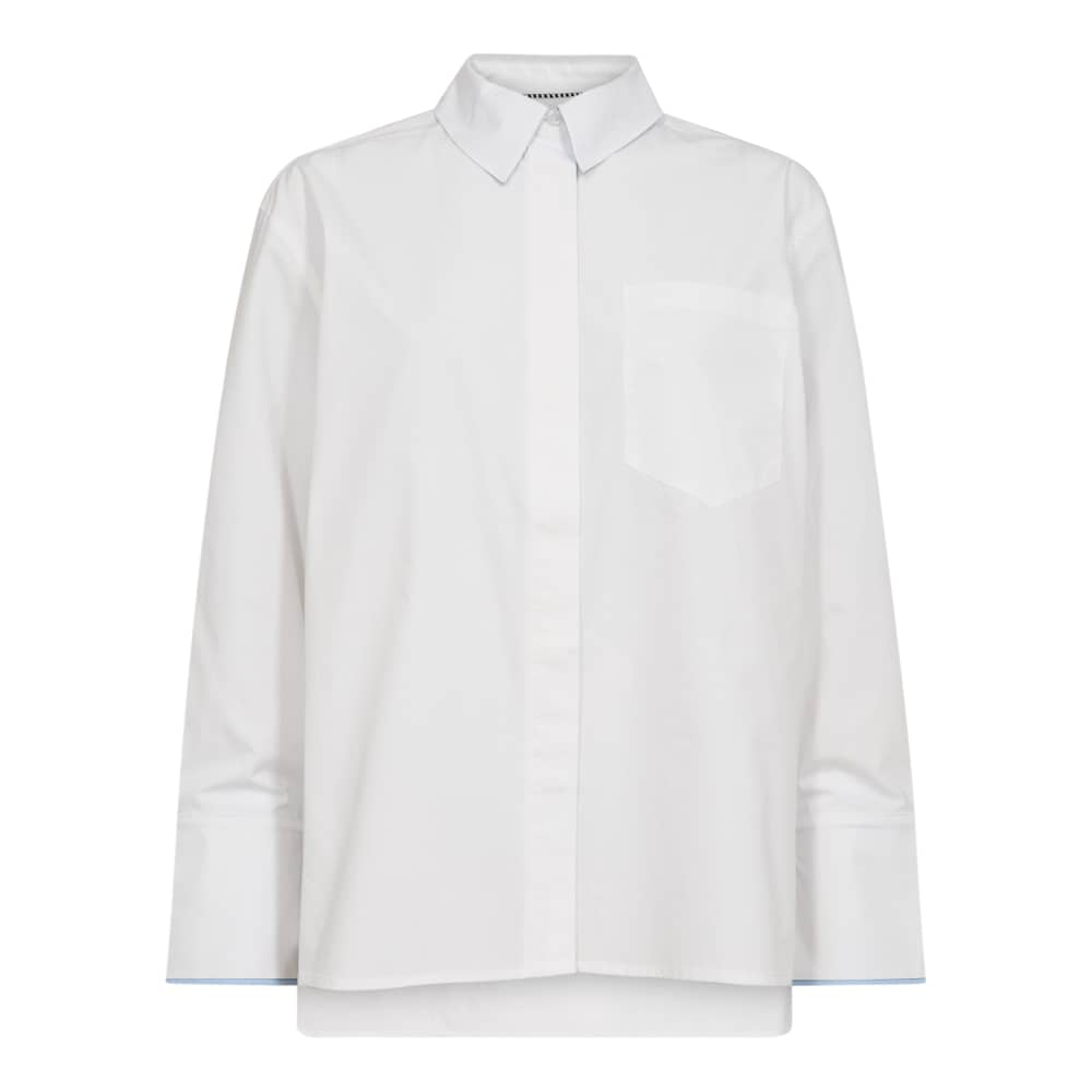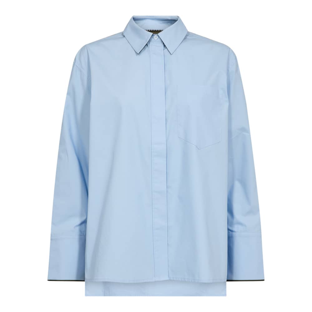 Blouse van Co'Couture met lange mouwen, brede manchetten, verborgen knoopsluiting, klassieke kraag, opgestikte borstzak en plissé detail aan de achterzijde. Materiaal: Katoen 100%