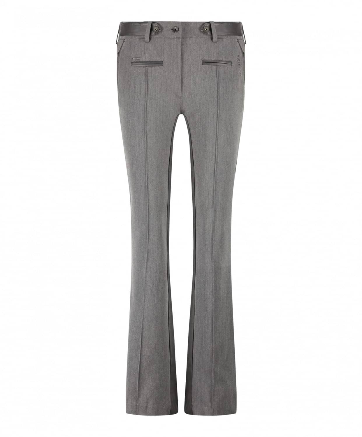Flared broek van Zip73 in een materialenmix van luxe zachte stof aan de voorzijde en eco-leer aan de achterzijde met een knoop- en ritssluiting, twee paspelzakken aan de voorzijde en een opgestikte achterzakken.