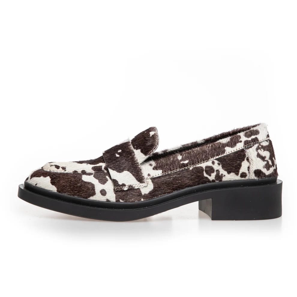 Loafers van Copenhagen shoes in hairon leer met een koeienprint.