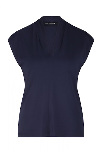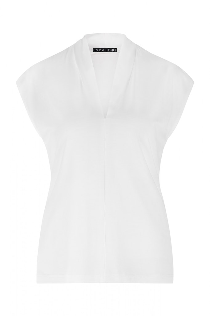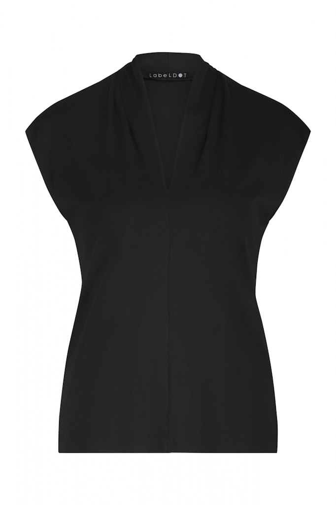 Top van Label Dot met korte aangeknipte mouwen, opstaande kraag en een V-hals. Materiaal: Viscose 63%| polyamide 31%| elastan 6%