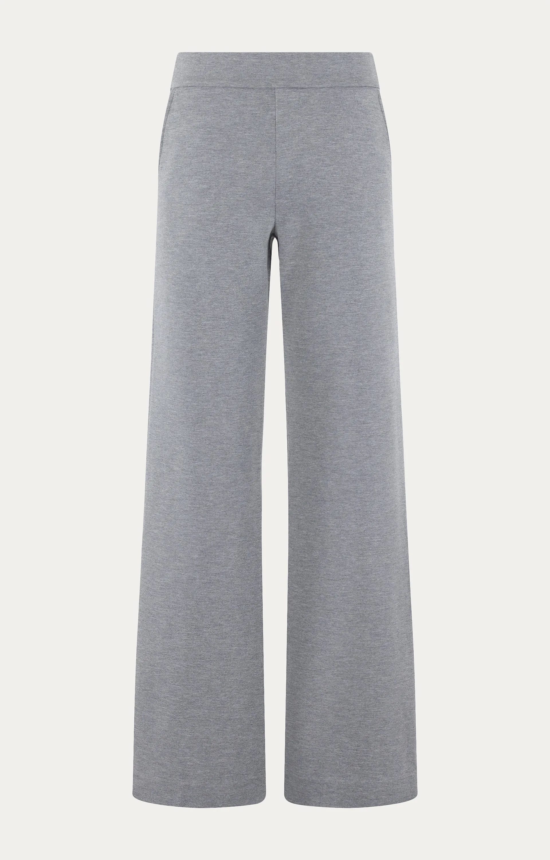 Gemêleerde broek van Moscow met wijde pijpen, steekzakken, een paspelzak aan de achterzijde en een elastische tailleband.