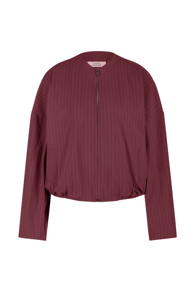 Gestreept bomber jacket van Studio Anneloes in travel kwaliteit met lange mouwen, verlaagde schoudernaden, ritssluiting, ronde hals, elastische boorden en steekzakken. Materiaal: Polyamide 74%| elastan 26%