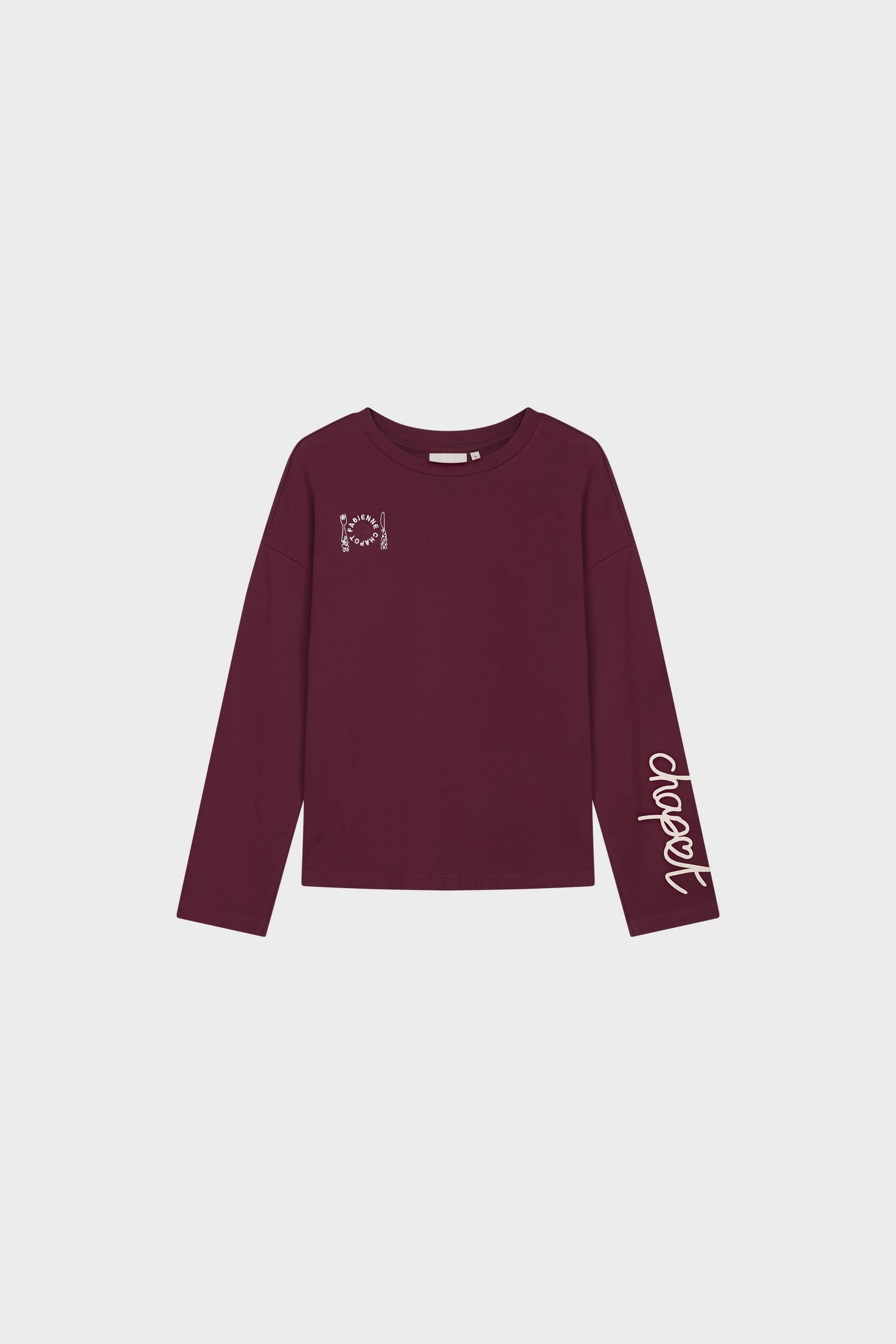 T-shirt van Fabienne Chapot met lange mouwen, ronde hals en opdruk op de linkerborst, mouw en achterzijde. Materiaal: Biologisch katoen 100%