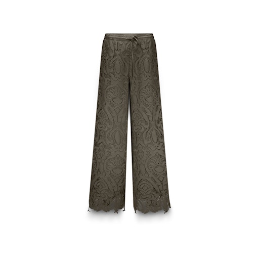 Gevoerde kanten broek van Summum met wijde pijpen, elastisch satijnen tailleband voorzien van trekkoord en steekzakken. Materiaal: Polyester 100%