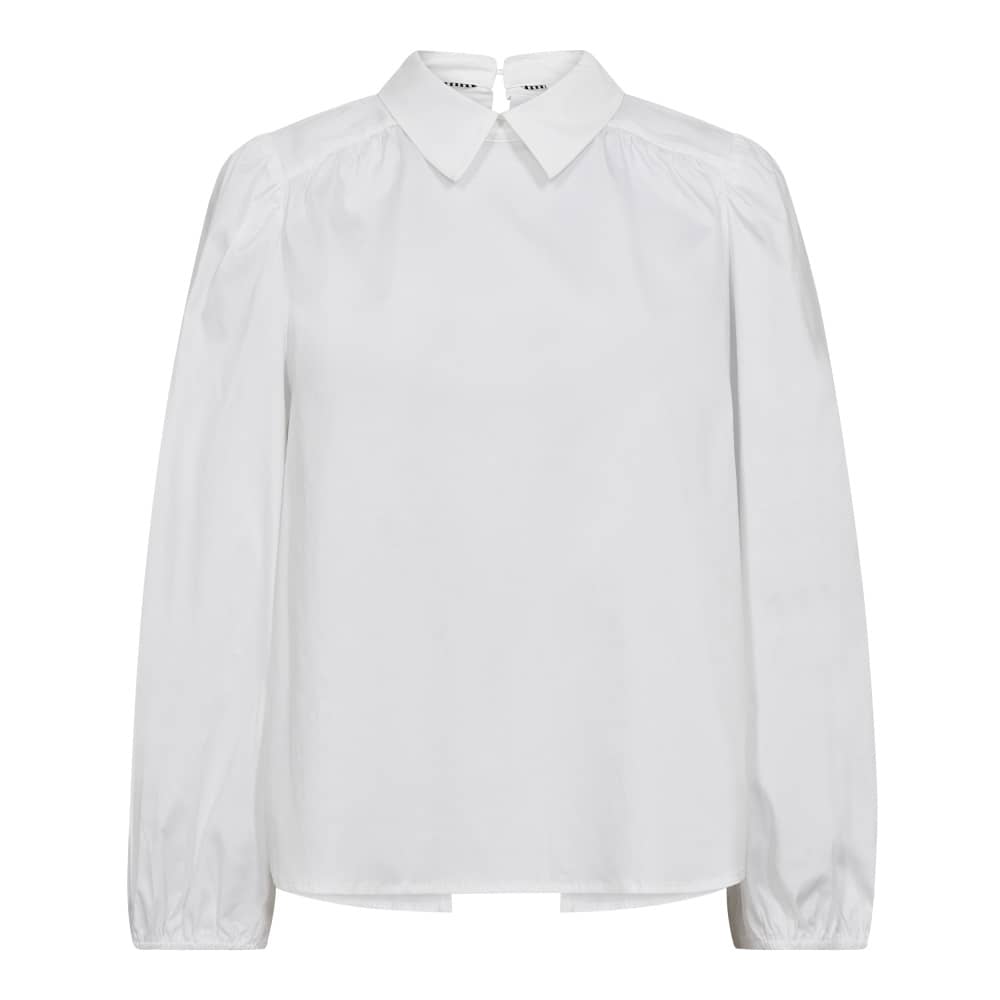 Blouse van Co'Couture met lange pofmouwen, kraag en een split voorzien van drawstring en knoopsluiting aan de achterzijde.