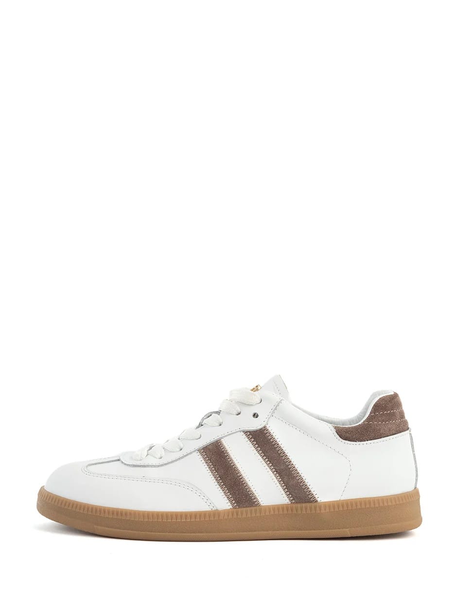Deze luxe sneaker van Babouche combineert een strak silhouet met twee verfijnde strepen en een opvallend zigzagstiksel. Een modern statement van stijl en vakmanschap, ontworpen voor wie oog heeft voor detail. Materiaal: Leer/suede