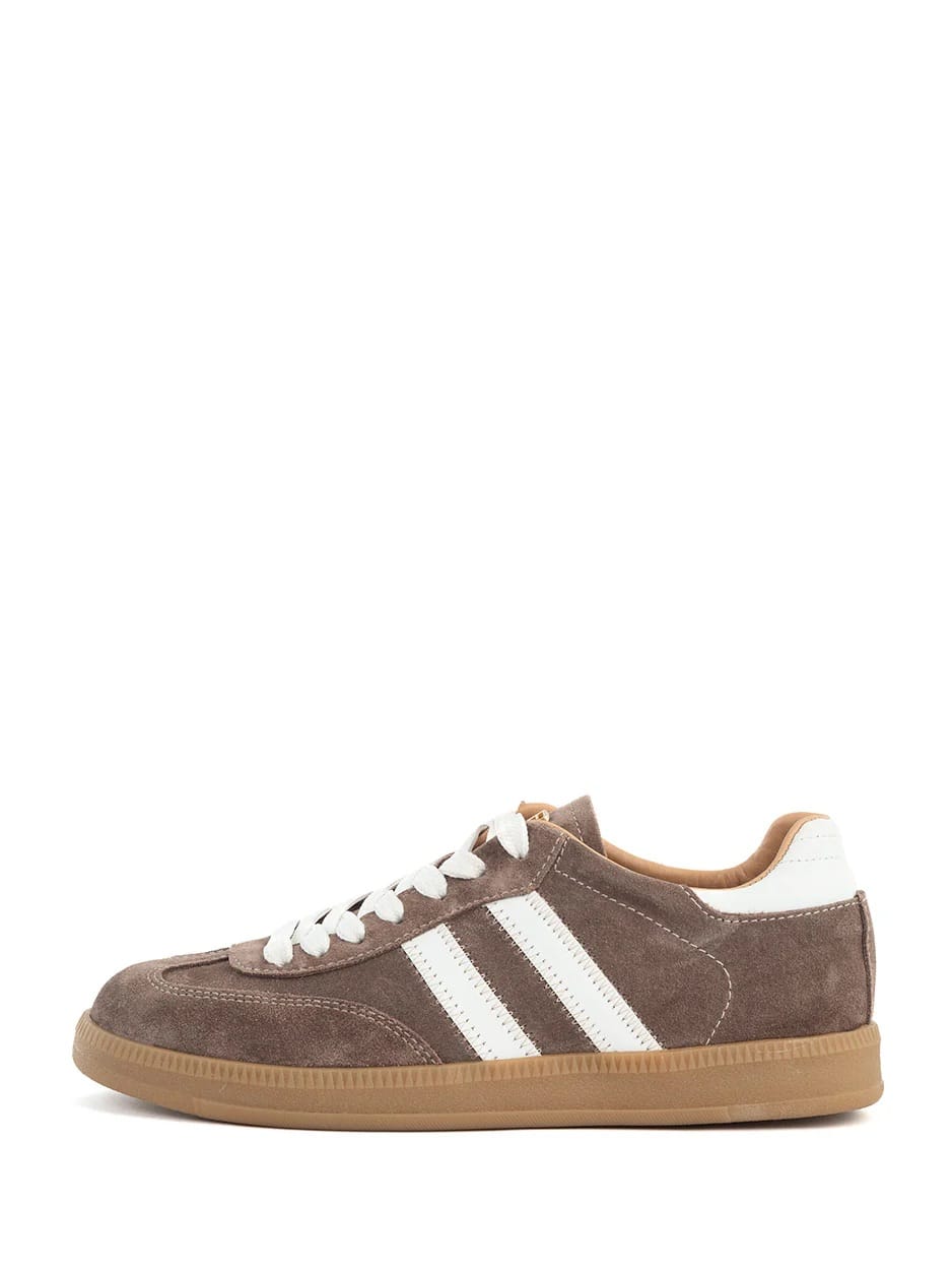 Deze luxe sneaker van Babouche combineert een strak silhouet met twee verfijnde strepen en een opvallend zigzagstiksel. Een modern statement van stijl en vakmanschap, ontworpen voor wie oog heeft voor detail. Materiaal: Leer/suede