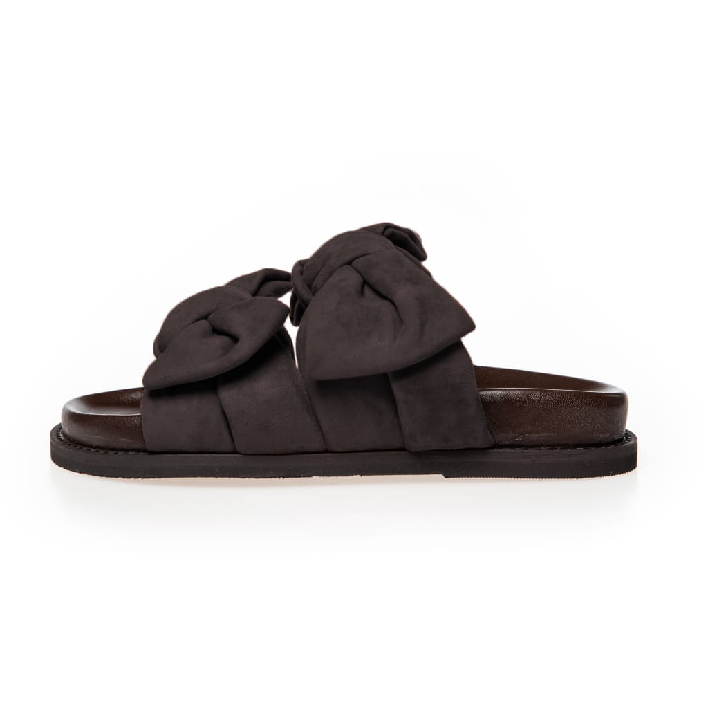 Mooie sandalen van Copenhagen shoes in zacht suède, met twee grote decoratieve strikken. De binnenzool is van leer en gevoerd met onze speciale Copenhagen Shoes latex zool, die heerlijk zacht loopt. Lichtgewicht en flexibele buitenzolen van EVA.